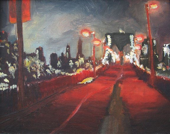 Brooklyn Bridge By Night, oil on canvas paper, 8" x 10", 2001