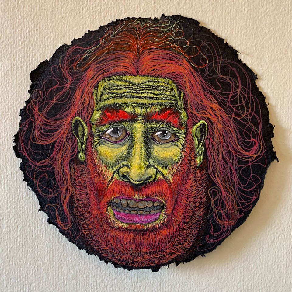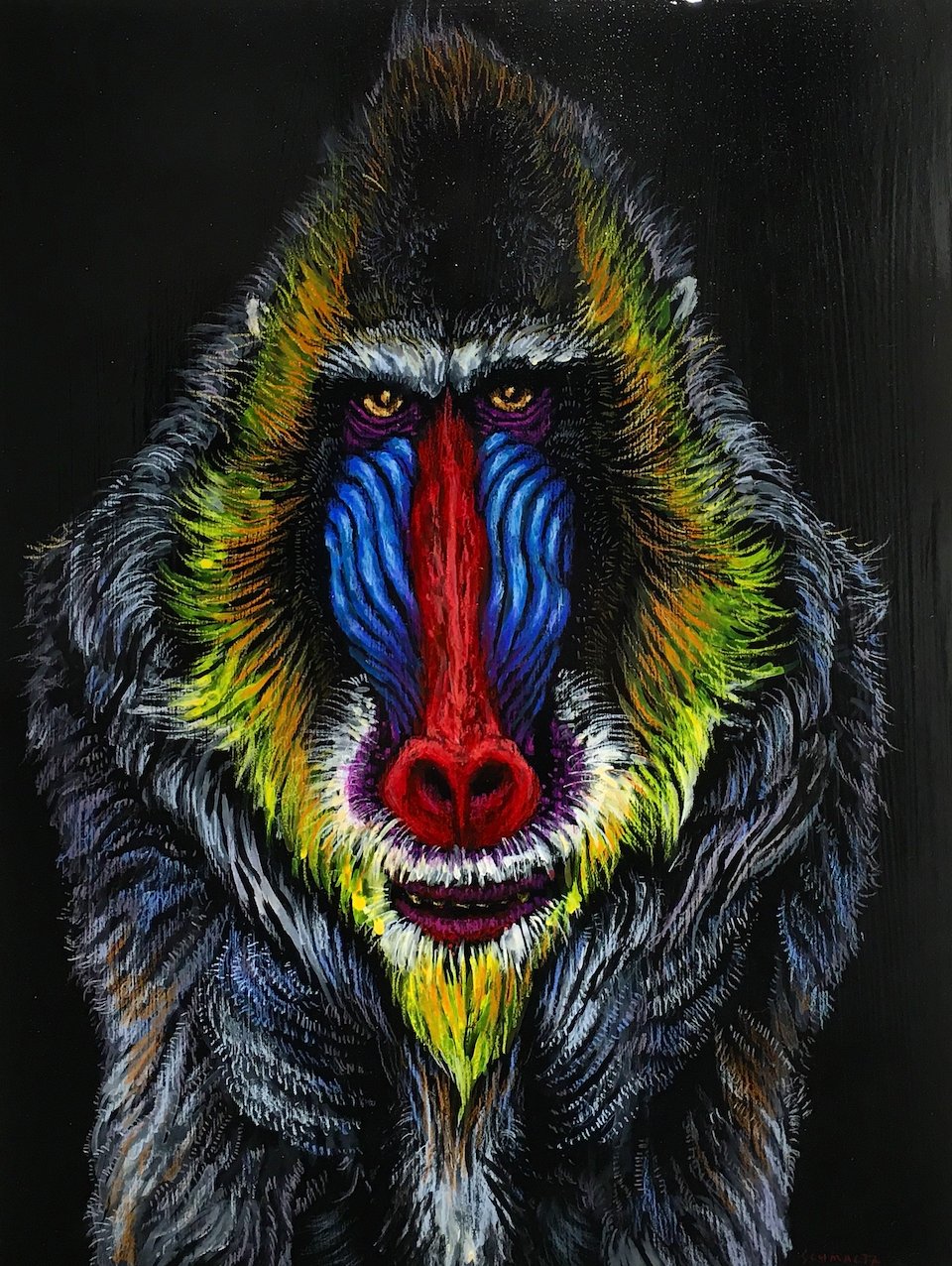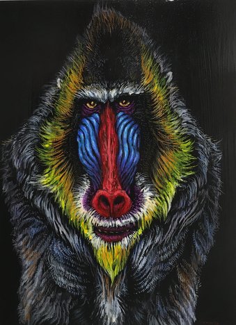 Mandrillus Sphinx, gouache, colored pencil, and black gesso on wood panel, 16" x 12", 2016