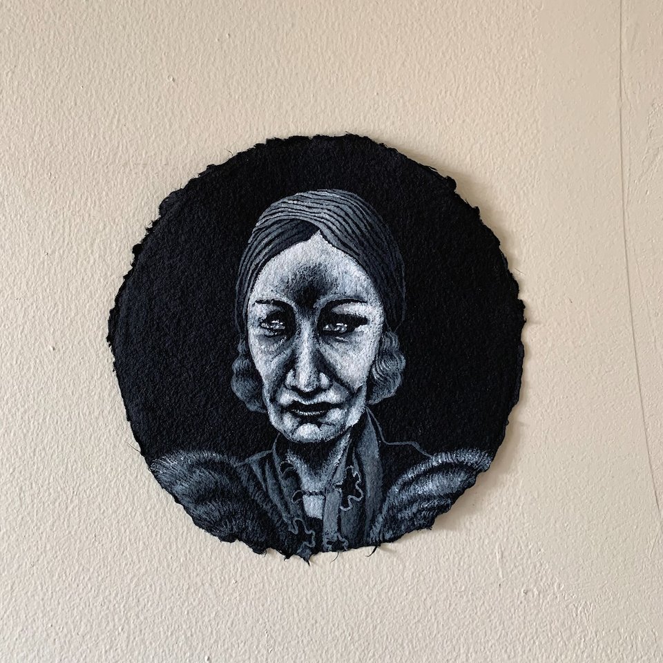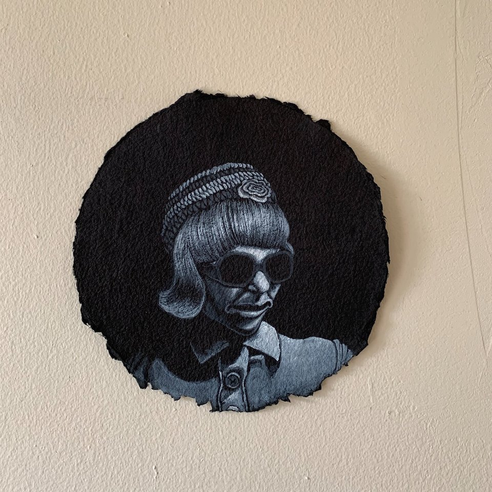 Heir Apparent, gouache, colored pencil, wax pastel, black gesso on panel, 24" x 18", 2016