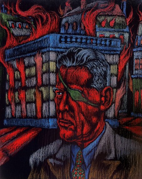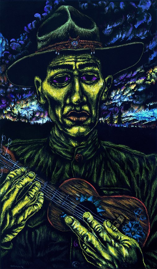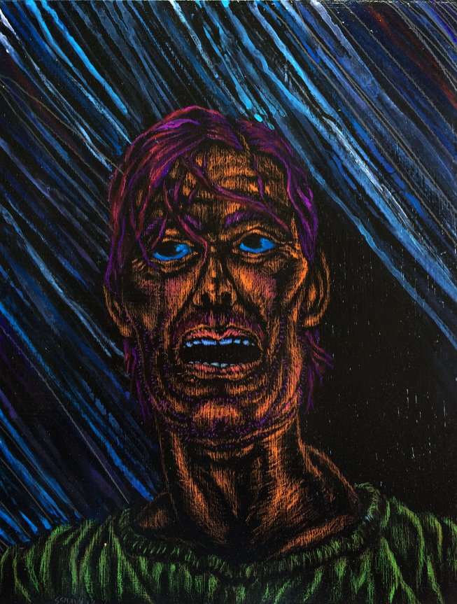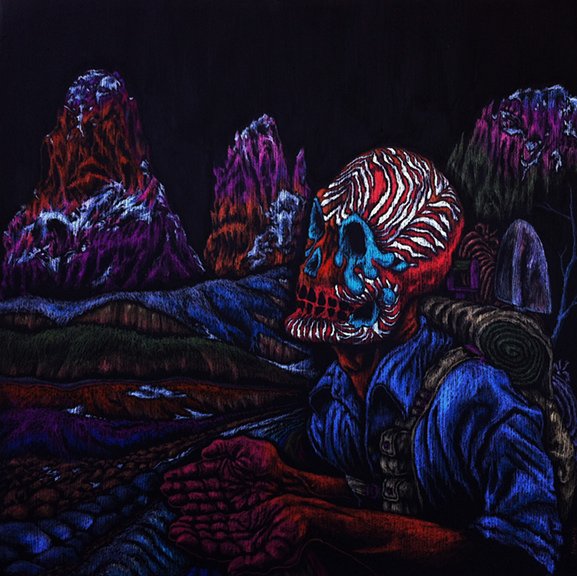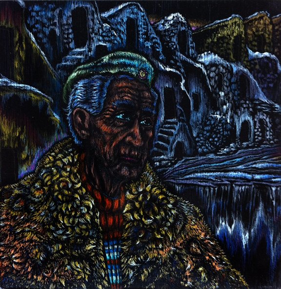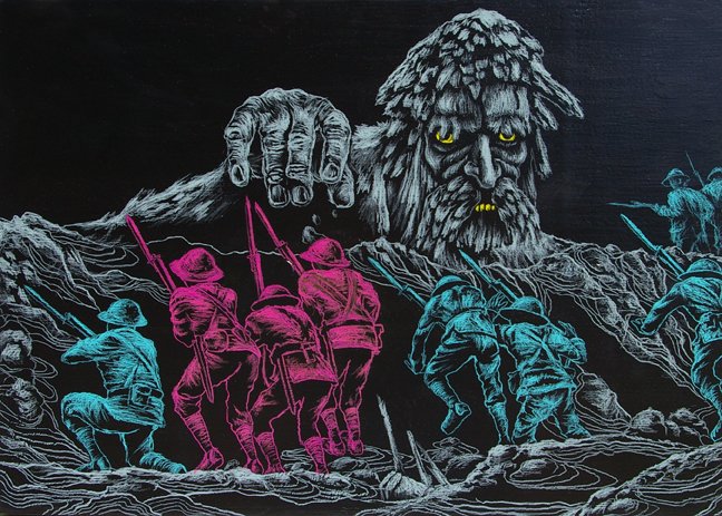 Mud Man on the Somme, colored pencil and china marker on panel, 11" x 16", 2010