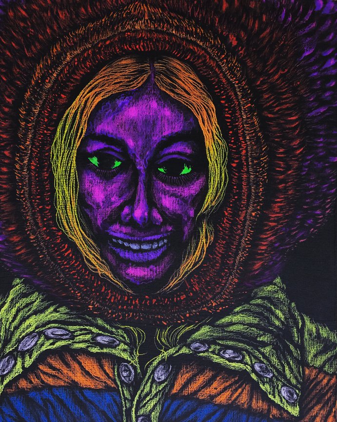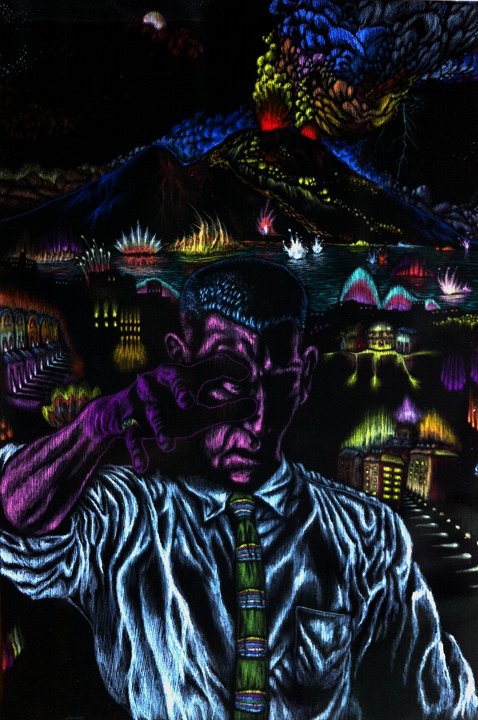 Incantation (Vesuvius), colored pencil, china marker, black gesso, varnish on panel, 36" x 24", 2013